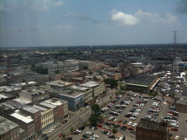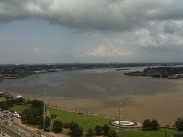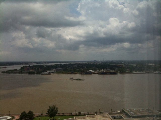 Here’s the wonderful view of the Mississippi/French Quarter from my hotel room window