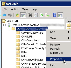 Use the connection point “Default Naming Context” if it is not already selected by default. Right-Click on your domain’s root folder and select Properties