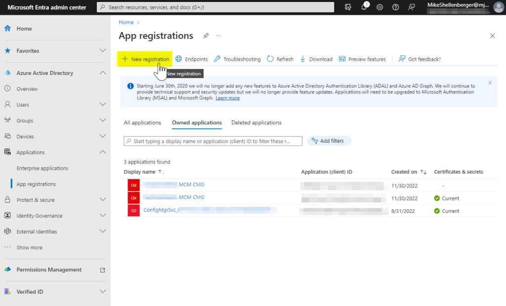 - From the Microsoft Entra Admin Portal expand Azure Active Directory, then expand Applications, and click on App Registrations.