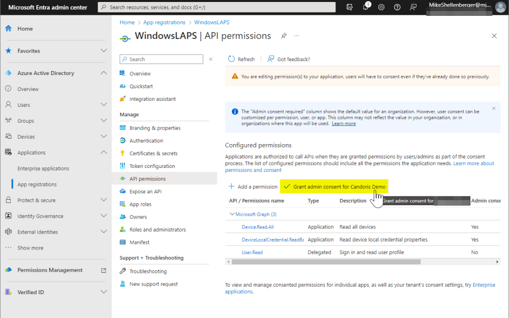 Preparing Azure AD for Windows LAPS