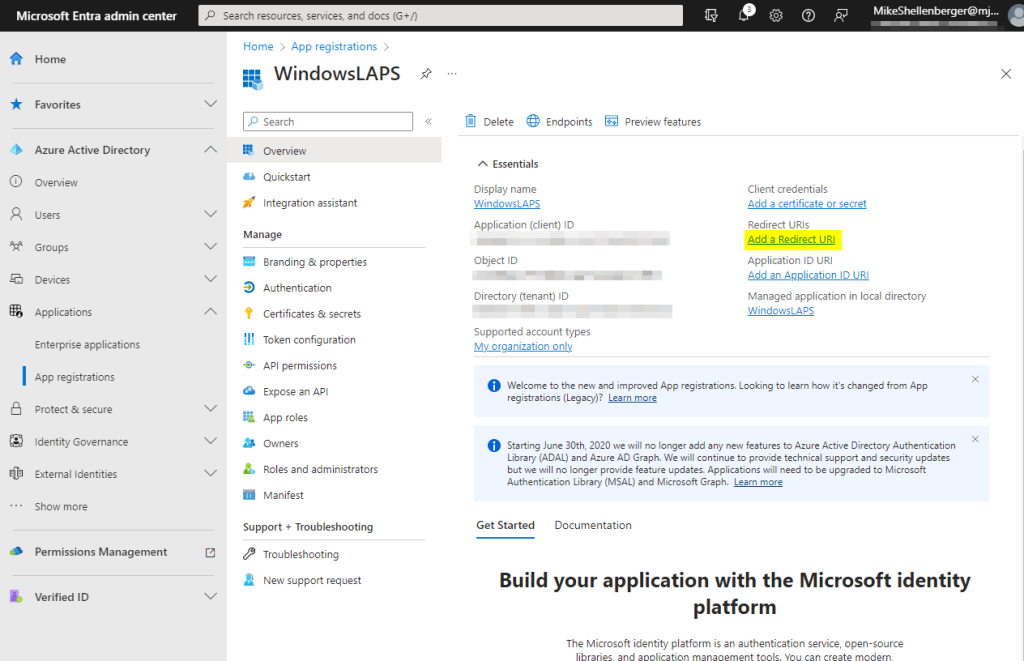 - Create an Azure Active Directory application that’s configured with the necessary permissions for Windows LAPS: