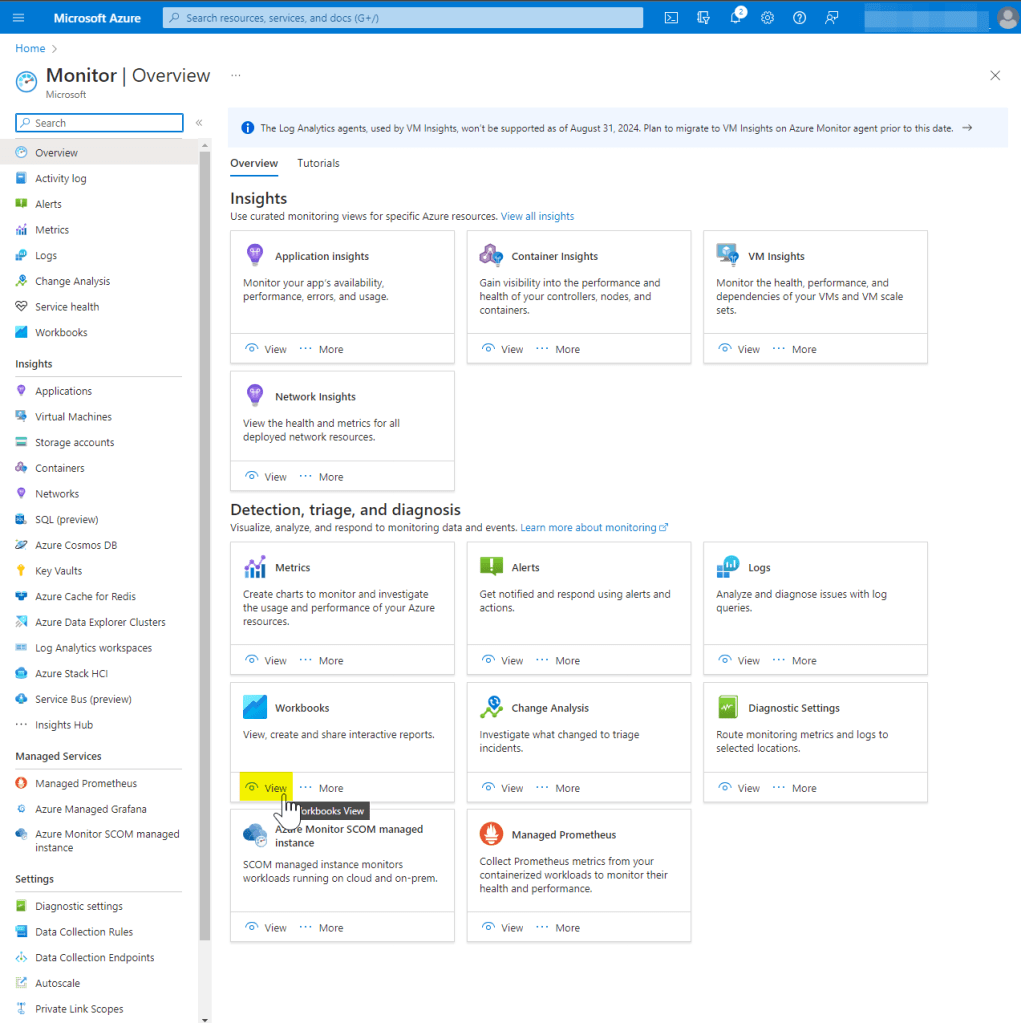 5. Now that a new Log Analytics Workspace is available for use, we will enroll in the Windows Update for Business reports. The easiest way to do this is through the Azure workbook detailed in the following steps.