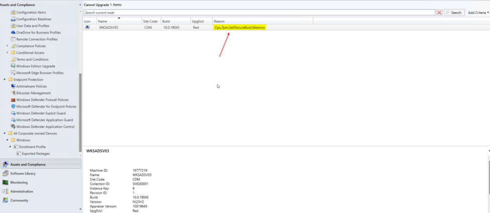 Now that the Configuration Manager site architecture is capable of deploying Windows 11 upgrades via task sequences, we need to validate that our existing Windows 10 client hardware will support the upgrade to Windows 11. Windows 11 is the most secure by default version of Windows yet. As such, some additional hardware requirements, such as a TPM 2.0 chipsets are necessary. Thankfully, there are built-in tools in Configuration Manager that can automatically test enrolled Windows 10 devices and report back their hardware upgrade readiness status.