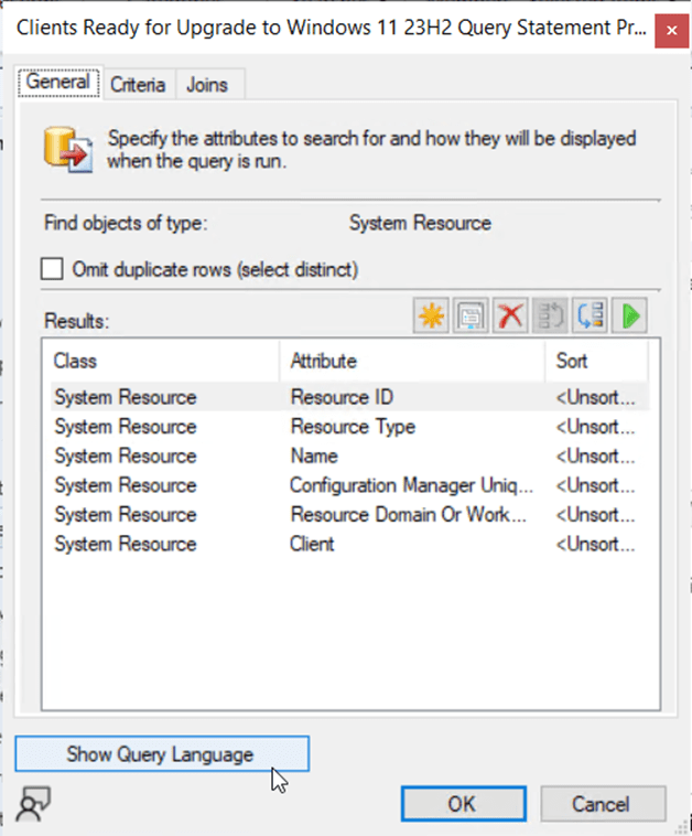 Now that we have a device collection that contains all Windows 10 clients, let’s create another device collection that contains ONLY the Windows 10 devices ready for upgrade to Windows 11 23H2.