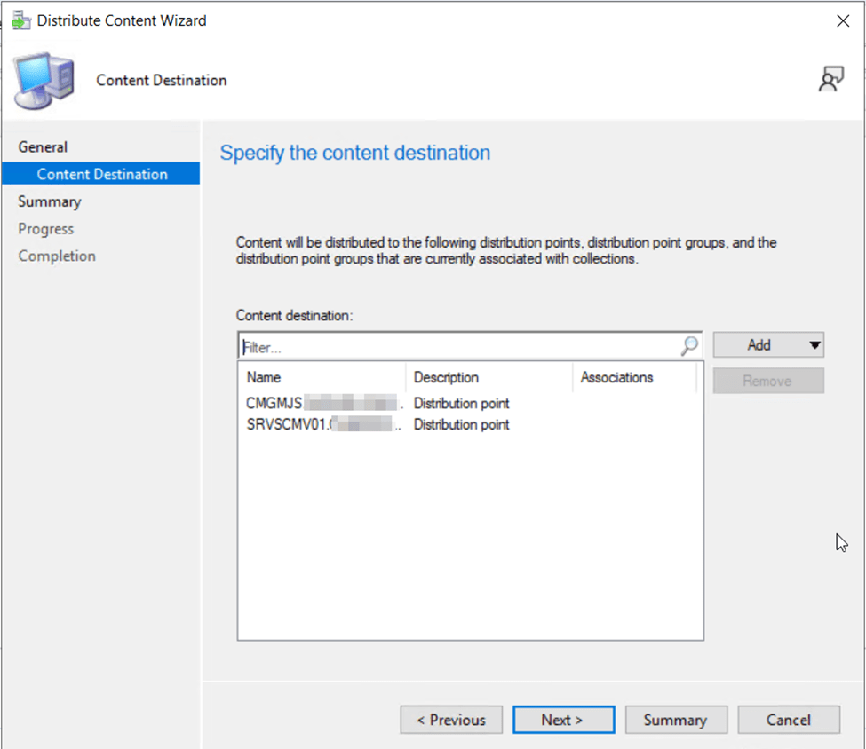 - Confirm the settings, then click Next and wait for the wizard to complete the assignment. Click Close. Wait for the distribution points to receive the content before proceeding to the next step.