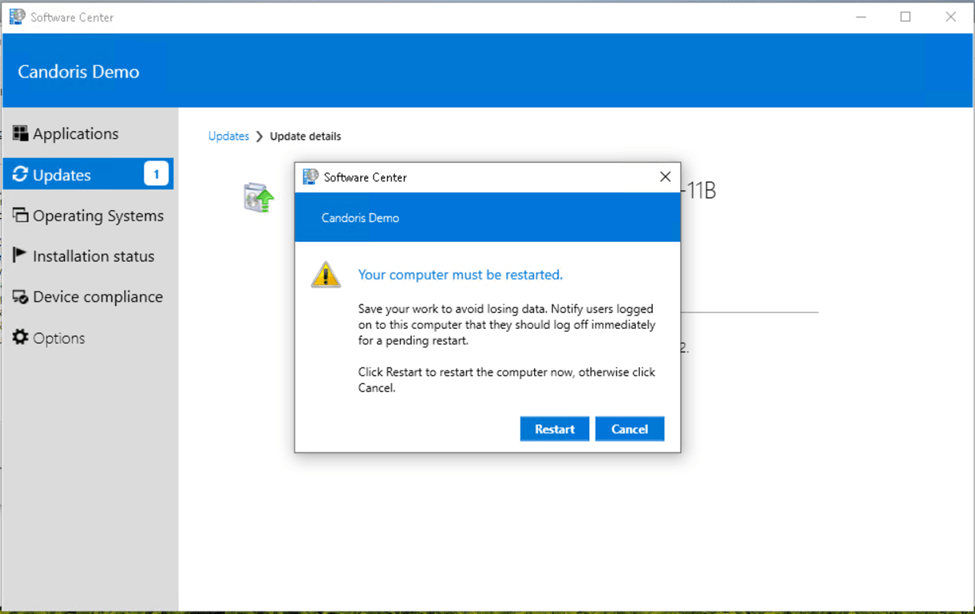 Continue to monitor the Windows 11 Upgrade Readiness dashboard and deployment success of the servicing plan. When the deadline you configured for the update arrives, users will be forced to apply the update although the restart will wait for user intervention.