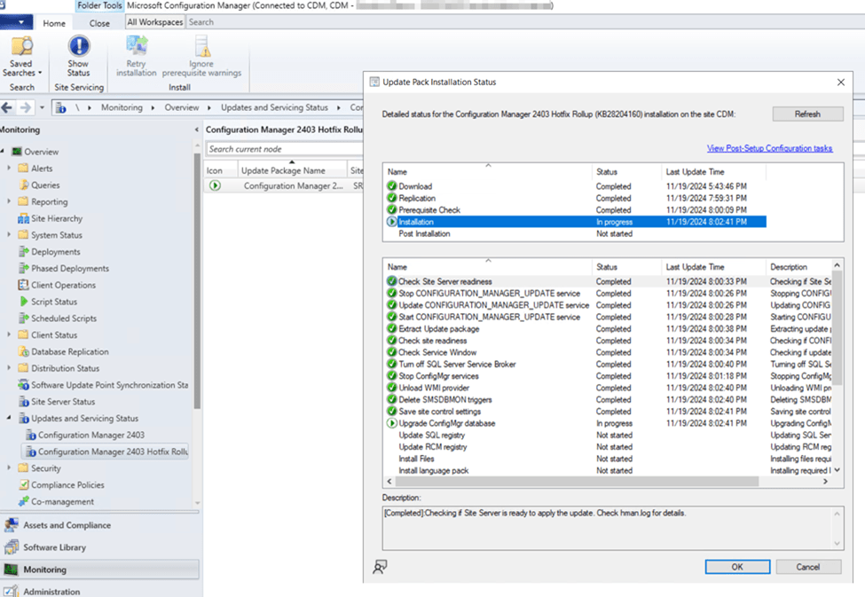 The feature update will now begin to download and distribute to your site infrastructure based on the software update package we just created.