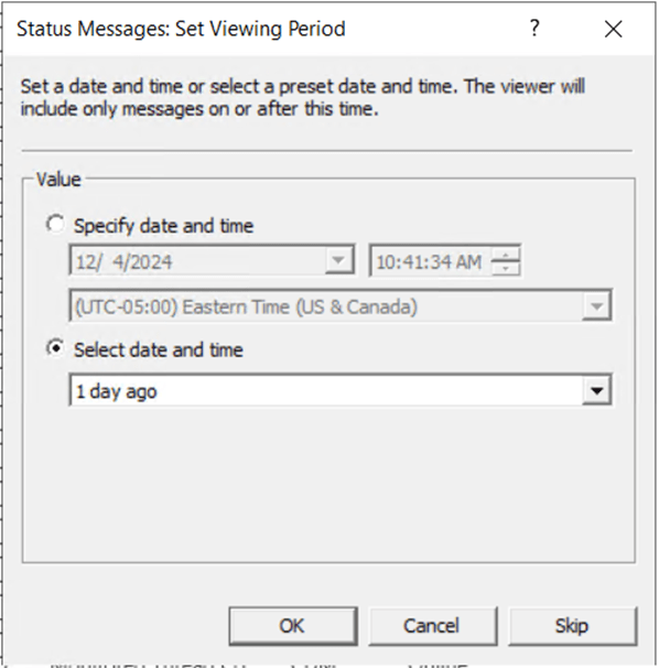 You can leave the viewing period to the default of 1 day ago. Click OK.