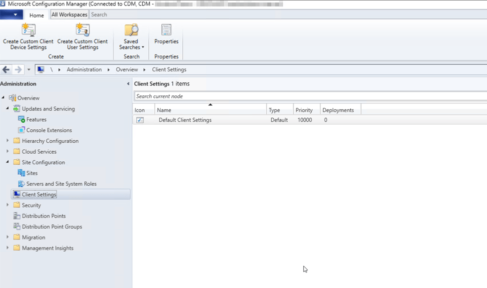 Our final Configuration Manager site preparation step is to review/modify two client agent settings that are important for Windows 11 update deployment process. From the Configuration Manager console, navigate to Administration > Client Settings.