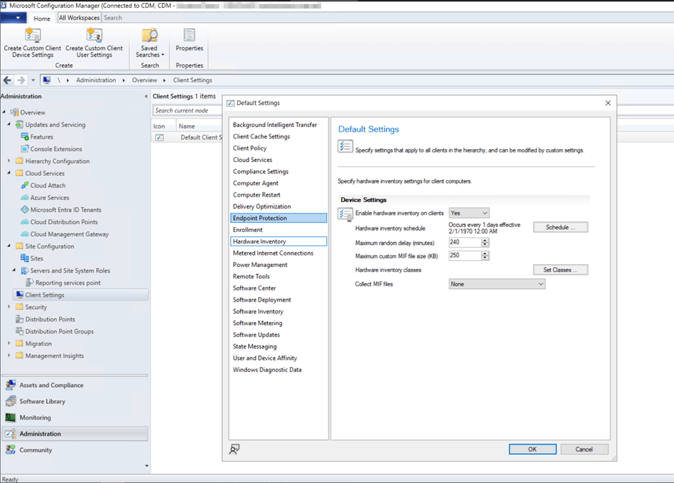 First, ensure clients are reporting hardware inventory information by verifying client settings in the Configuration Manager console: Administration > Client Settings